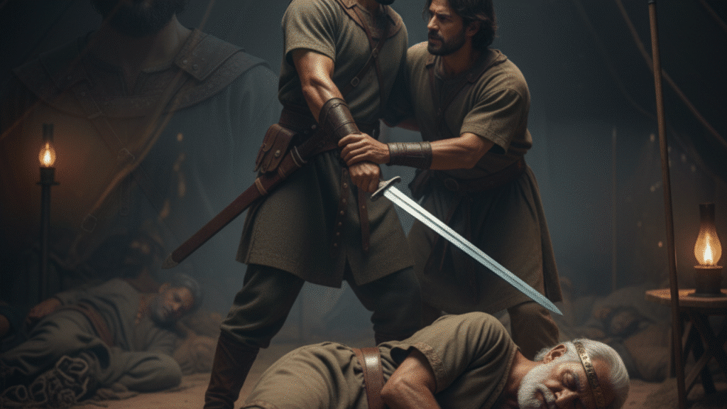 • Quiso Matar a Saúl: David tuvo que detenerlo para que no matara al rey dormido.
