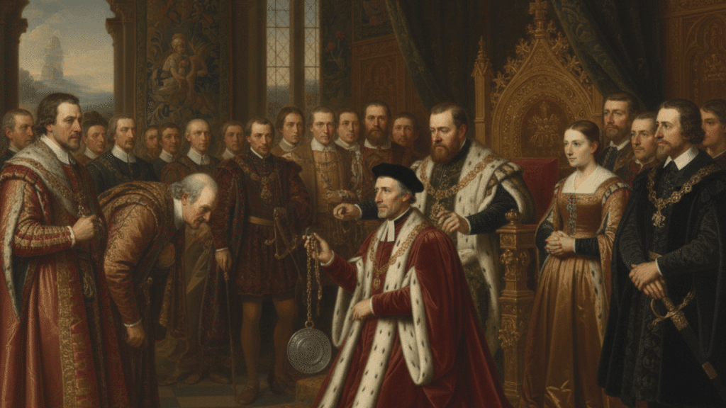 - Servicio al Rey: Tomás Moro ascendió rápidamente en la corte de Enrique VIII. Sirvió como diplomático, consejero, y Lord Canciller (cargo equivalente a Primer Ministro).