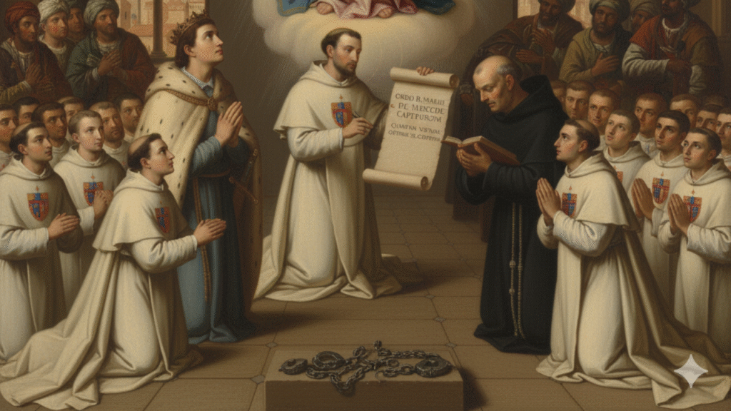 • El Contexto (1218 d.C.): En España, durante la Reconquista, miles de cristianos eran tomados cautivos y vendidos como esclavos en el norte de África, donde corrían el riesgo de perder la fe.