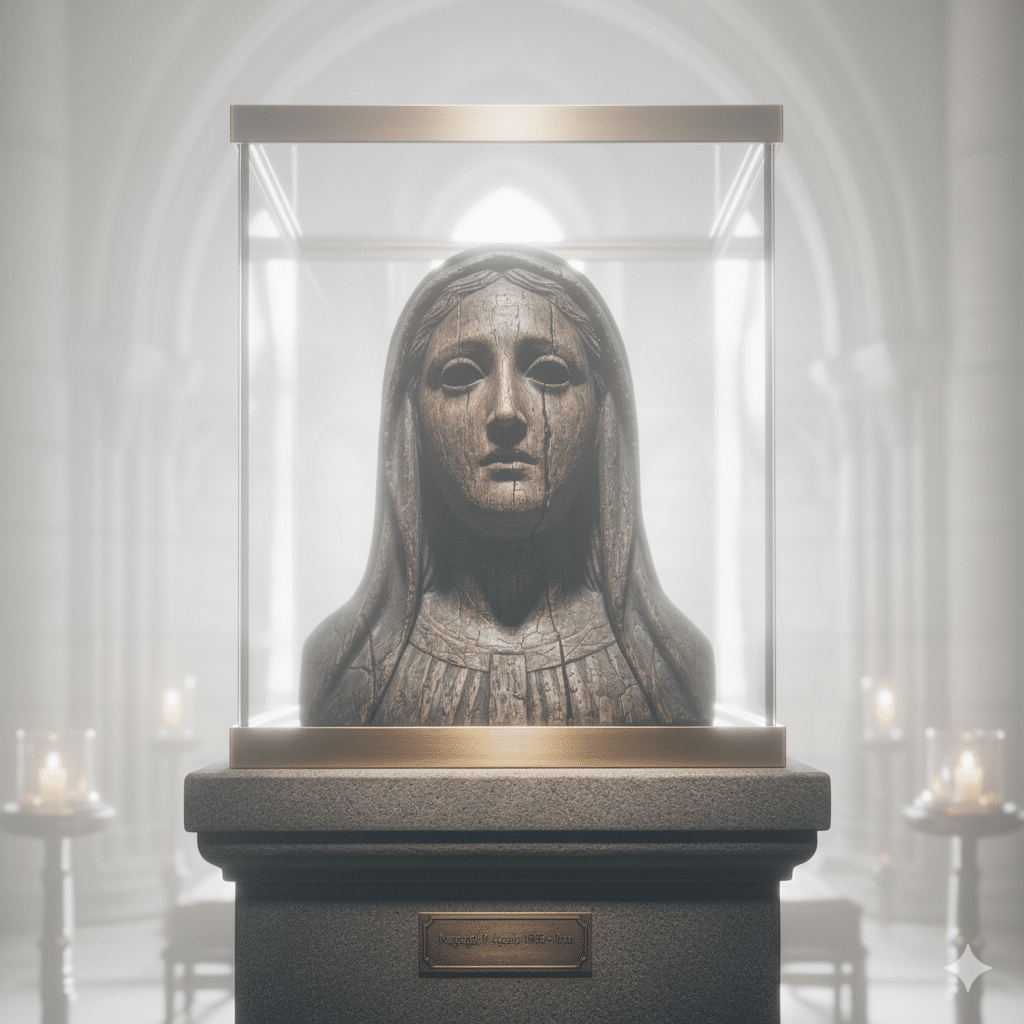 - El Hallazgo Milagroso: Meses después, un monje trapense llamado Kaemon Noguchi, que había sido movilizado por la guerra, regresó a las ruinas. Buscando entre los escombros de lo que fue el altar mayor, encontró la cabeza de la estatua. Aunque el cuerpo se había desvanecido, el rostro de la Virgen permanecía, conservando una expresión de paz dolorosa.